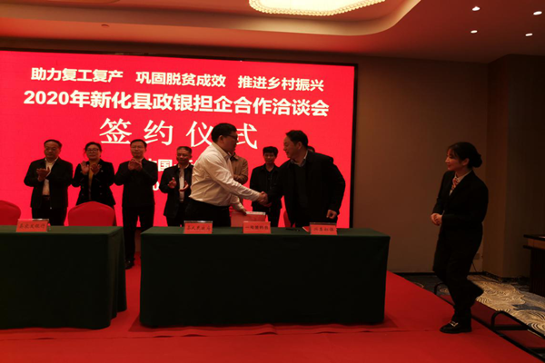 (图为兴娄担保与新化县人民政府成功签订风险分担协议)