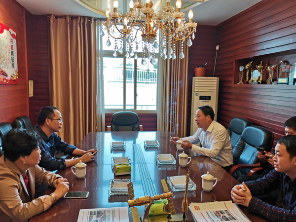 (图为兴娄担保董事长带领调研组与企业主就企业发展深入沟通)