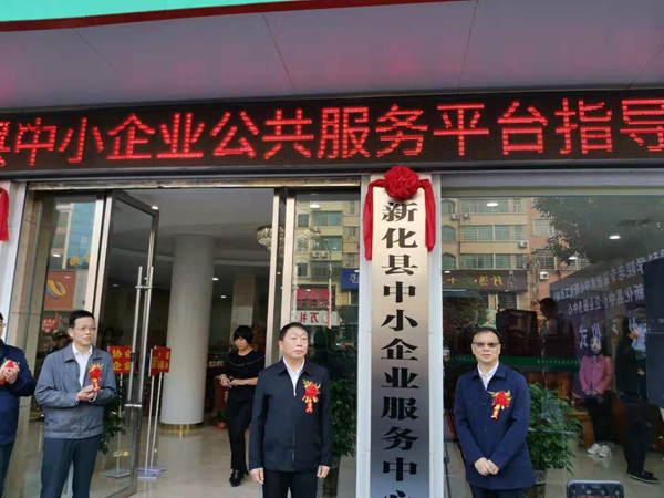 (图为新化县中小企业服务中心揭牌仪式)