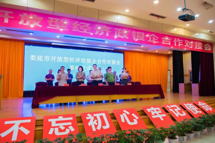 2019年6月18日,为了搭建对接平台,促进政银企合作,有效解决外向型中小微企业融资难、融资贵问题,推动全市开放型经济高质量发展,娄底市开放型经济领导小组组织召开了全市开放型经济政银企合作对接会,兴娄担保公司应邀参加。会上,兴娄担保重点进行了外贸出口担保业务产品的推介,并分别与中国银行、中国农业银行、中国建设银行、中国工商银行、交通银行、长沙银行等共6家银行签订了《外贸企业出口融资担保战略合作协议》,分别与6家授信贷款企业、有关银行签订了《银企担三方协议》,取得了良好的效果和丰硕的成果。