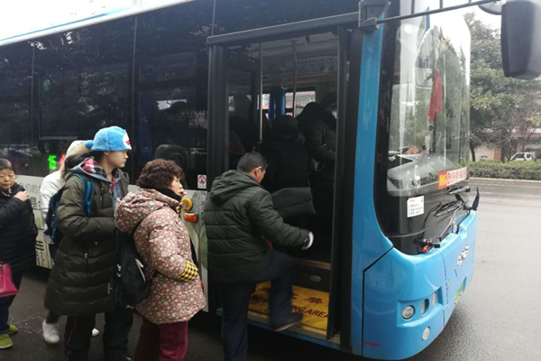 (图为在文明劝导员的引导下,乘客有序的上车)
