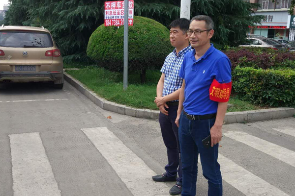 除了更好的让党员同志树立良好的交通安全和文明行车意识,兴娄还组织了党员上路进行文明交通劝导活动。在石马公园北门、鸿源紫荆酒店十字路口引导市民文明过马路,阻止行人闯红灯,热情地为市民指路。号召党员同志们积极主动地维护城区文明交通秩序,进一步营造“文明、礼让、温馨、和谐”的良好交通氛围。