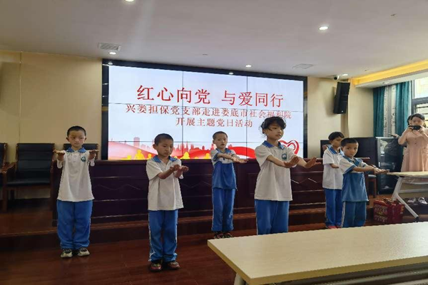 活动当天,兴娄担保党支部一行了解了福利院的发展历程、接收社会困难人员的标准、与在场部分困难儿童的家庭状况等相关情况,参观了孩子们学习、生活的部分区域,并将慰问物资一一发放至孩子们的手中:随后,在《中华孝道》《听我说谢谢你》的歌声中,兴娄担保党支部一行观看了孩子们的表演,一张张稚嫩却又认真的小脸,一双双明亮又坚定的眼睛,不仅让我们看到了他们的生活状况,也看到了他们对生活、对未来的期盼。